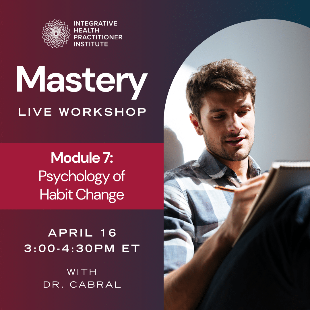 On April 16th at 3:00 PM EST, Dr. Cabral will be live for the Module 7 workshop! He will guide you through the psychology of habit change.